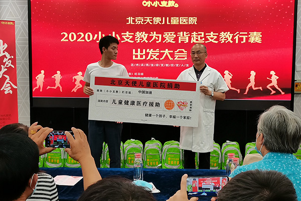北京天使儿童医院戈光辉院长表示:贫困地区的孩子的学习往往面临诸多挑战,除了学习物资的输送和优质教育资源的供给,贫困地区孩子的身心健康更应该得到重视,为此北京天使公益团队此次“99公益日 小小支教,为爱背起行囊”活动,在带给孩子们学习物资的同时,更重要的是为孩子们提供身心健康检测以及医疗帮扶,为贫困地区的孩子们托起明天的希望。