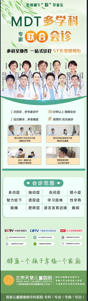 同时,端午假期期间(6月22日-24日),北京天使儿童医院特邀知名儿科专家开展多学科联合会诊活动,为广大患者多对一会诊,一站式解决儿童疑难病问题!
